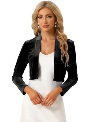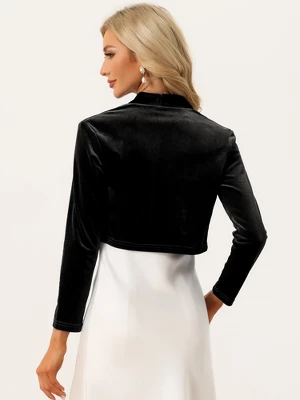 - The retro cardigan is made up of several design points: soft velvet, open front, shawl neck, long-sleeved, cropped bolero shrug for evening dress