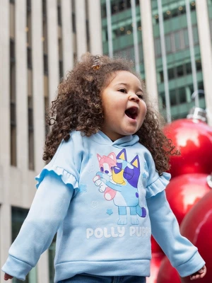 Come meet Bluey the 6 year old Blue Heeler pup and her younger sister Bingo! Watch Bluey and Bingo come to life through your little one’s friendly and fun personality. Your child is going to love playing indoors or outdoors in their new Bluey Fleece Hoodie and Leggings Outfit Set.