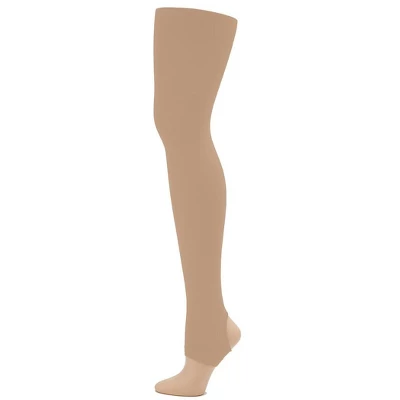 Rising dancers will feel unstoppable in the Ultra Soft Self Knit Waistband Stirrup Tight. Made of a nylon and spandex blend that wicks moisture to keep dancers dry while working up a sweat. The self knit waistband keeps the tight securely in place without the discomfort of elastic. Available in multiple shades to complement every style.