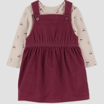 Baby’s signature Fall look has arrived. Here’s an adorable 2-piece skirtall set from Carter’s Just One You that you’ll style again and again for mommy & me outings. This 2-piece outfit for baby girl features a plum corduroy skirt and cherry print long-sleeve top. The overalls also have functional back strap buttons, so dressing baby girl is hassle-free.