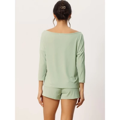 - Designed with solid colors, slanted shoulders, and long sleeves with shorts, this pajama set will make you feel comfortable and cozy at home