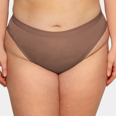The same fit you love from our Sheer Mesh High Cut Thong now in opaque! Made of soft opaque micro fabric, no show through that feels second skin and luxurious. Smooth, stretch microfiber and mesh moves with you through the day, itll feel like youre wearing nothing. Our Silky Smooth panties have a ultra-soft hand feel with a hint of shine. Great quality that will last, retain its stretch, and look good on all body types. Pair with our Silky Smooth Unlined Bras for the perfect matching set. Try this bliss.