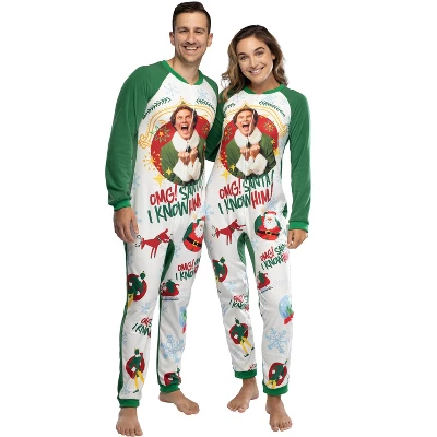 - SOFT AND WARM – This raglan-style footless sleeper features an all-over print of Santas, reindeer, snowflakes and Buddy silhouettes, along with a large picture graphic of an excited buddy and the words OMG! Santa! I Know Him! The sleeves and back are a contrasting green that matches Buddy’s Elf Suit color