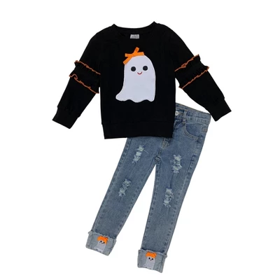 Get all BOO’d up this Halloween with a trendy cuffed jeans set that will charm from the classroom to trick-or-treat time! We know your little girl will look faBOOlous!.
