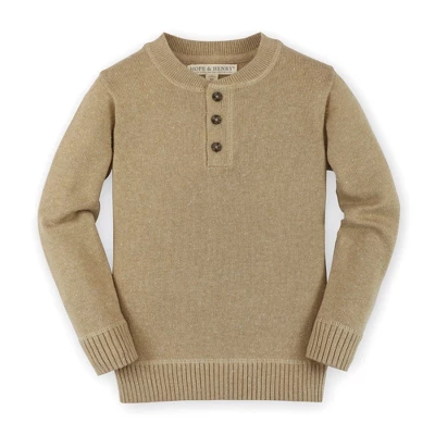 Our long sleeve sweater henley in soft organic cotton combines the sporty look of a henley with the coziness of a sweater for the ultimate in comfort and style. Features a heathered knit with subtle contrast fleck yarn, matte button closure at the center front placket, and rib trim at the cuffs and collar. A sophisticated twist on a classic!