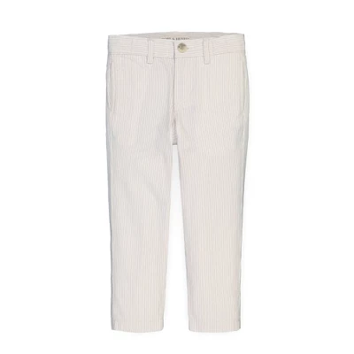 Our classic organic cotton seersucker pant is the perfect look for special occasions with the family or a trip to the beach. Features a zip fly with faux horn button, side pockets, back welt pockets, and an adjustable waistband for ultimate comfort and superior fit. Keep it casual or dress it up with our complete seersucker suit!