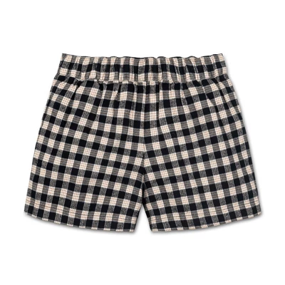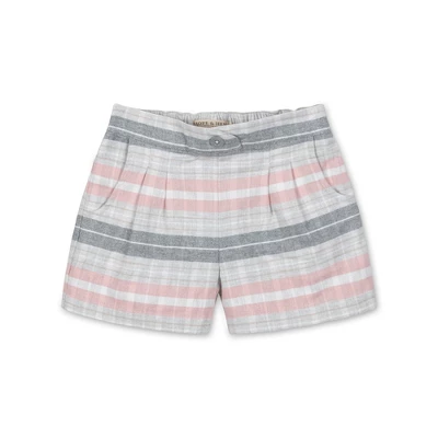 Complete your holiday outfitting with our adorable dressy short cut from soft organic cotton flannel. Combines the ease of a pull-on (with a back elastic waistband) with classic details like a faux button front, side pockets, and pleating. Coordinates perfectly with our collection of organic cotton tops, sweaters and cable leggings!