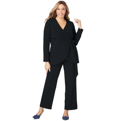 Your desk-to-dinner wardrobe just got even more versatile. Sophisticated and oh-so-chic, this pantsuit features a faux-wrap jacket with a stylish, feminine fit. It’s a classic must-have that easily blends with the rest of your closet.