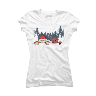 Junior’s Design By Humans Christmas Santa And Rudolph Peaking By Rasok T-Shirt