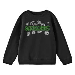 Minecraft Doodle Logo Crew Neck Long Sleeve Black Youth Sweatshirt