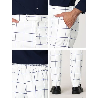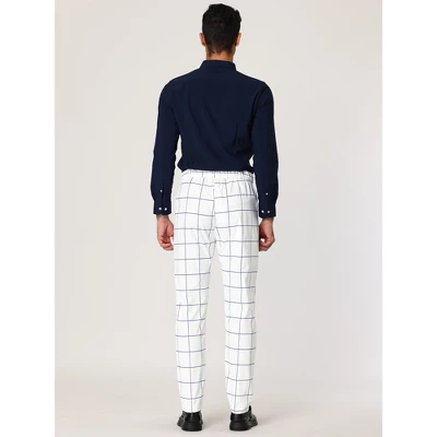 The plaid design of these slim-fit formal trousers is fashionable and characteristic.The slim-fitting tailoring shows the perfect leg shape, which helps you look better after wearing it.Easy to match your T-shirts, polo, or shirts for your casual style.Suit up for office, meeting, or dating in refined slim-fit striped dress pants.