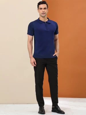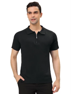 The simple color of the polo shirt with a zip on the front gives the garment a sleek and modern look. Polo shirts are ribbed on the shoulders and arms, paired with jeans, slacks, or blazers for a modern look. Knit polo made from lightweight fabric provides comfort. Perfect for everyday wear, team sports, baseball, work, beach, vacation, and more. Great gift for husband, boyfriend, dad, son, or friend.The model is wearing a Large-size product. Shoulder: 19 2/8 inches, Chest: 38 2/8 inches, Waist: 30 6/8 inches, Hip: 40 4/8 inches.