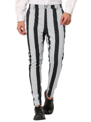 The slim-fit dress pants feature the timeless striped design, making you look shiny daily.The eye-catching color block design makes you stand out from the crowd.The soft and smooth fabric allows for greater comfort, while stretch gives you more freedom to move.Easy to match your shirts, T-shirts, polo shirts, or blazer for your business style.The versatile style is the reason you choose these classic dress pants, you can not only wear them to work but also at prom, a party, or dating.