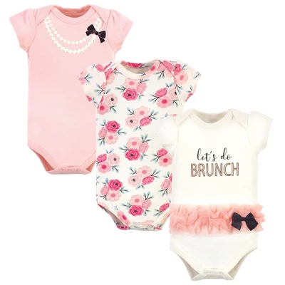 Little Treasure bodysuits are an essential part of baby’s wardrobe. Our bodysuits feature adorable prints, embroideries, stripes and solids and provide a comfortable base layer that’s great for pairing with pants, shorts, or even wearing under outfits. Our bodysuits are comfortable and cozy for all-day, everyday wear for your little one. Little Treasure Baby Girl Cotton Bodysuits 3pk, Lets Do Brunch is a great baby essentials set for your little one.