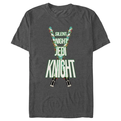 - Strut your stuff with this stylish new Men’s Graphic T-Shirt that is perfect for every occasion! Featuring two crossed Lightsabers and the phrase “Silent Night Jedi Knight” printed across the front.