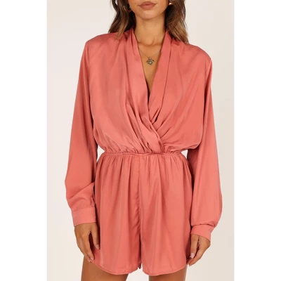 Look chic and feel comfortable in this dreamy, deep overlay playsuit. With a flattering v neckline and long sleeves with functional button close, you will look stylish all day long. The back features a keyhole cut out closure with a functional button to create the perfect silhouette.