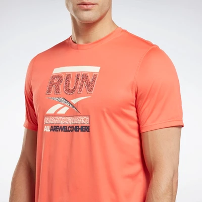 Slip on this men’s running t-shirt before lacing up your sneakers for your daily escape. Speedwick fabric pulls moisture away from your skin to keep you feeling dry through the last mile. Reebok graphics are splashed boldly across the chest.