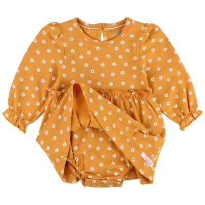 Your little one will be comfy and cute in this long sleeve skirted romper from RuffleButts! Made with soft knit fabric, this romper combines the comfort of a bodysuit with the twirl-worthy charm of a skirt and includes bottom snaps for easy changing. Whether she’s playing in the pumpkin patch or posing for family photos, this romper will be the perfect addition to her wardrobe!