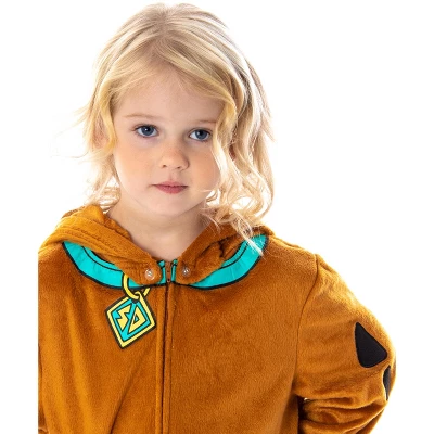 - SUPERIOR EMBROIDERY – This cute Scooby-Doo hooded toddler one-piece pajama features black spots on the sleeves and a large one on the back. The hood has 3D ears and a cute Scooby face, all done in a high-quality embroidered design. It has a printed collar around the neck to put the finishing touches on the costume pajama look! The hood is detachable so they can go straight from, look at me, mom, I’m Scooby-Doo! Into sleep mode!