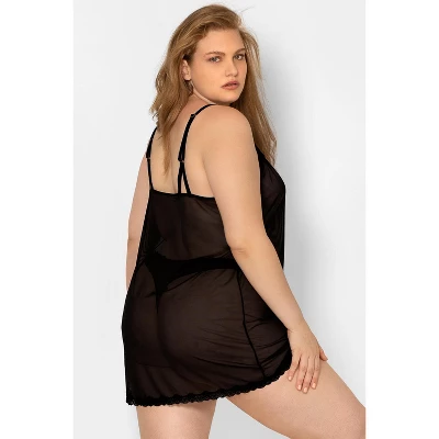 Slip into something a little more daring. The Sheer Lace & Mesh Chemise Lingerie is simply sexy on all body types. Silky-smooth, stretch mesh floats over the body for a relaxed fit, showcasing your natural silhouette. Subtle v-neck, back strappy details and scalloped lace trim add sophisticated and modern touches. Plush, velvety straps make this womens chemise adjustable.