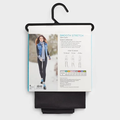 Look cute and stay cozy during the colder months with the Warm Essentials by Cuddl Duds Women’s Smooth Stretch Thermal Leggings in black. These cute leggings come in a classic black color that matches easily with your favorite tops. Pair with sweaters, flannels, sweatshirts and jackets to create a look as effortlessly cool as you! Plus, the pull-on design and mid-rise fit offer all-day comfort, while the smooth, stretchy fabric offers room for easy movement. Whether you’re going out for coffee or staying in with Netflix and a pile of blankets, these leggings will help you stay toasty and cozy.