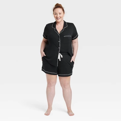 - 2pc pajama set comes with short-sleeve button-down shirt and pull-on shorts for a complete look