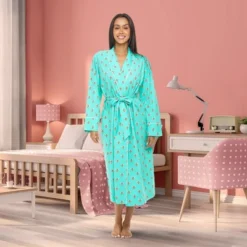 Womens Soft Cotton Knit Jersey Lounge Robe With Pockets, Long Bathrobe