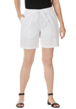 Agnes Orinda Women’s Plus Size Shorts Floral Straight Slash Pocket Lace Trim Elastic Waist Pants