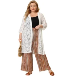 Agnes Orinda Women’s Plus Size Boho Palazzo Lounge Wide Leg Pants With Elastic Waist And Stripe
