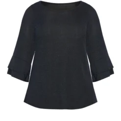 Women’s Plus Size Glitz Double Bell Sleeve Top – Midnight | AVENUE