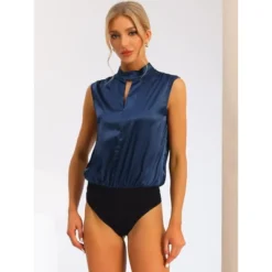 Allegra K Women’s U Plunge Tummy Control Adjustable Straps Built-in Bra Full Leotard Jumpsuit Top