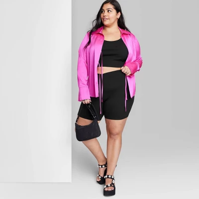 Bike shorts from Wild Fable™ in a solid hue. Made from a soft fabric with spandex for stretchy comfort that moves with you. Tailored in a slim-fit silhouette with a wide full elastic waistband plus a crisscross wrap-front pattern.