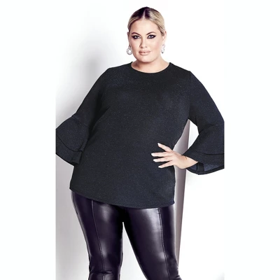 Taking center stage on any night out is our oh-so glamorous glitz Double Bell Sleeve Top! This gorgeous silhouette flaunts flared sleeves to make a style statement, with a luxurious metallic threat woven throughout.Everyday style made easy, Avenue is your one-stop-shop for plus size fashion. Inspired by a comfort-meets-style approach, this effortless brand marries relaxed silhouettes with dynamic prints and colors. From casual daywear to staple denim, Avenue has simplified your everyday dressing. Take your day-to-day look to new heights with comfortable basics or eye-catchingly printed pieces, all designed to keep you comfortable while flaunting your curves to perfection. Available in sizes 14 – 40.