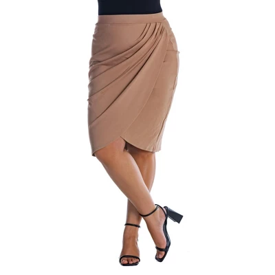 Introducing our Elastic Waist Knee Length Tulip Plus Size Pencil Skirt a versatile and stylish addition to your wardrobe. Available in three captivating color options, this skirt offers endless possibilities to express your personal style. The draped fabric detail adds a touch of sophistication, elevating your look for both work and dressy outings. Crafted from high quality material, this skirt ensures durability and a comfortable, stretchy fit that moves with you throughout the day. Whether you are attending a professional meeting or going out for a special occasion, this skirt is your go to choice. Its knee length design strikes the perfect balance between chic and modesty. Elevate your fashion game with the Elastic Waist Knee Length Tulip Pencil Skirt and experience the perfect blend of style, comfort, and versatility.