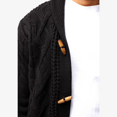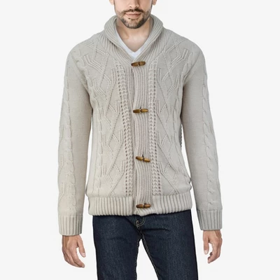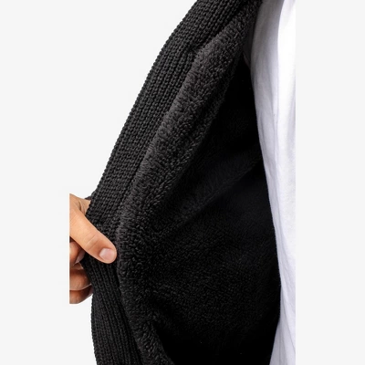 X RAY Men’s Faux Shearling Shawl Collar Cable Knit Cardigan Sweater.This vintage inspired shawl collar cardigan is comfortable yet has heritage-rich style. Added fleece lining for extra warmth during the chilly season.Textured Knitted Construction. Shawl Collar. Soft And Cozy Premium Fabric. Fleece Lined. Vintange Inspired Wooden Button.