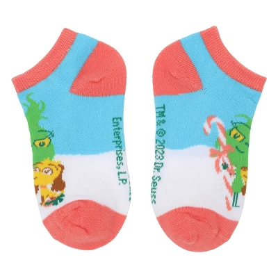 - Holiday Cheer with the Grinch: Elevate your child’s sock game with a 6-pack of officially licensed Grinch ankle socks, each featuring six unique and whimsical designs inspired by the classic Dr. Seuss character.